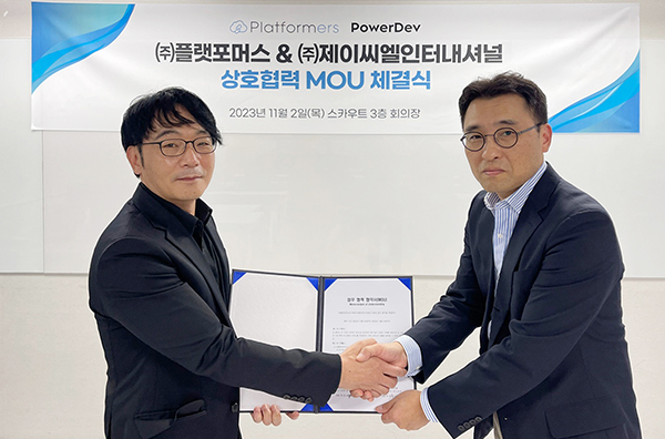 홈 클린 및 사업장 청소 플랫폼 ‘클린베테랑’과 채용 플랫폼 ‘스카우트’를 서비스하는 ㈜플랫포머스(대표 박준석)는 ㈜제이씨엘 인터내셔널(대표 박성민)과 글로벌 개발자 매칭 서비스 ‘파워데브’ 활성화를 위한 MOU를 지난 11월 2일 체결했다.