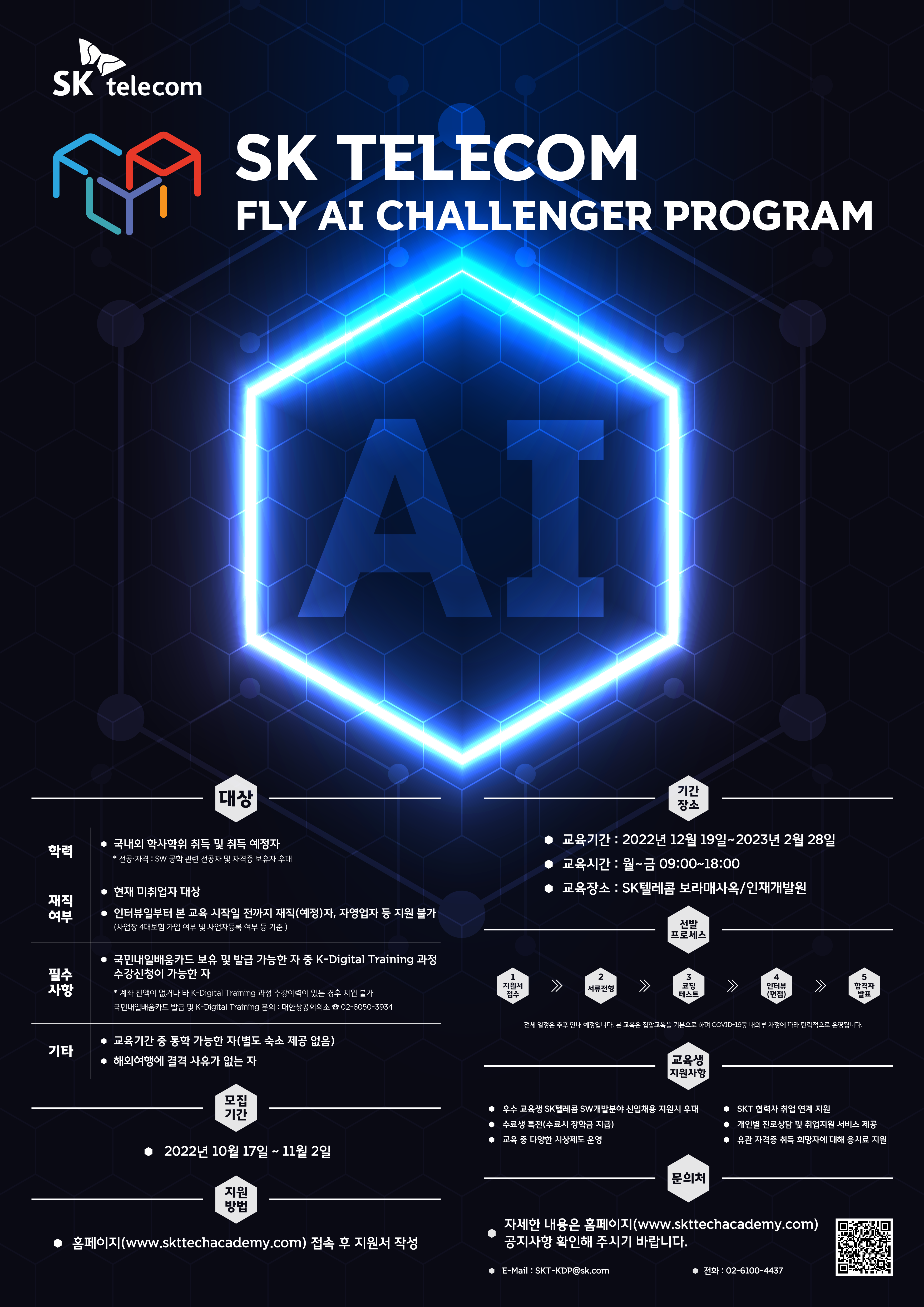 SK텔레콤이 진행하는 AI 개발자 교육(2기)에 많은 참여 바랍니다.