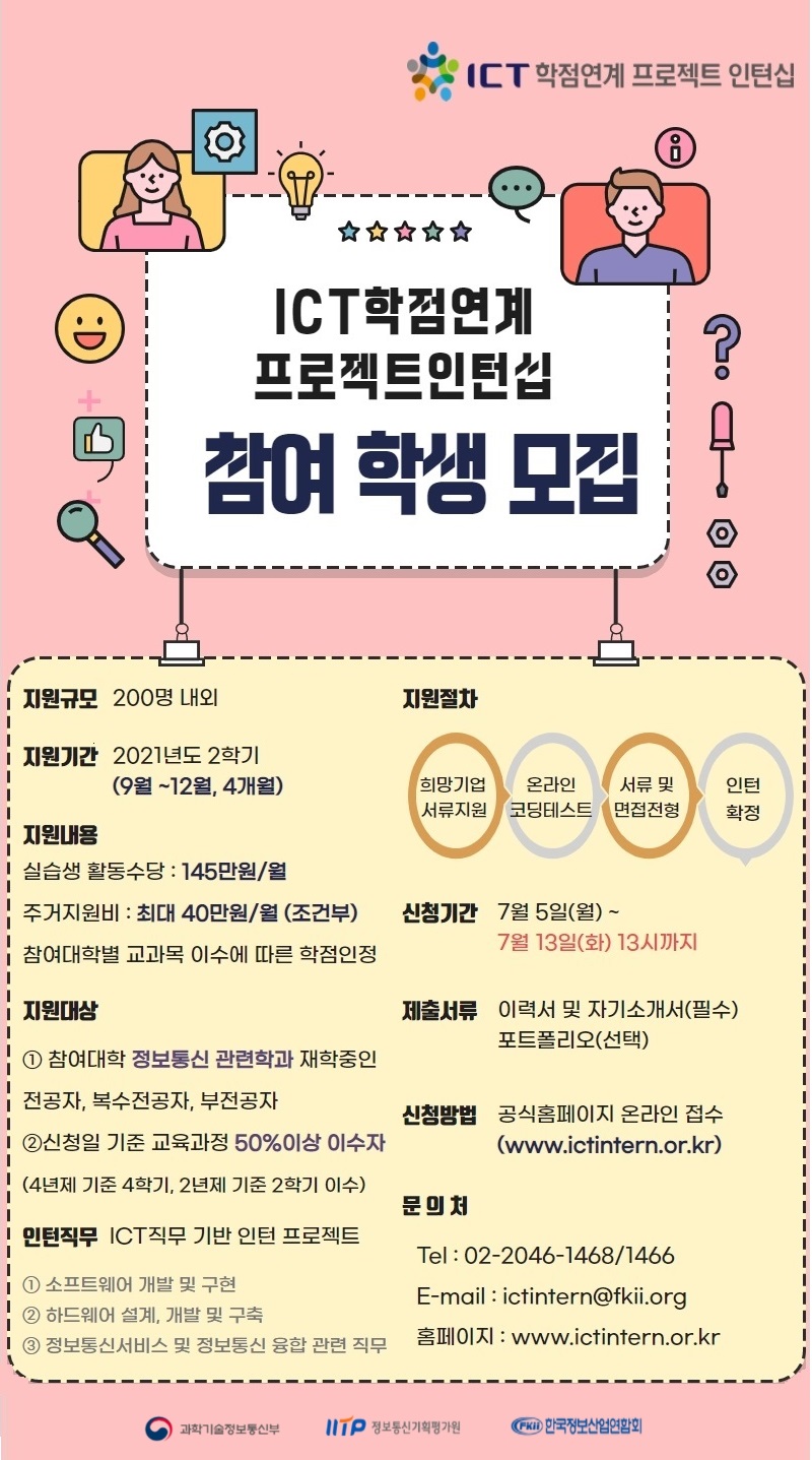 2021년도 2학기 "ICT 학점이수 인턴제" 수강생을 아래와 같이 모집합니다.